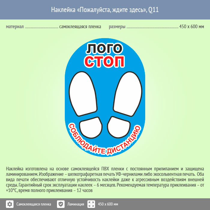 Наклейка на пол «Пожалуйста, ждите здесь», Q11 (пленка c ламинированием, 450х600 мм) в Черкесске купить