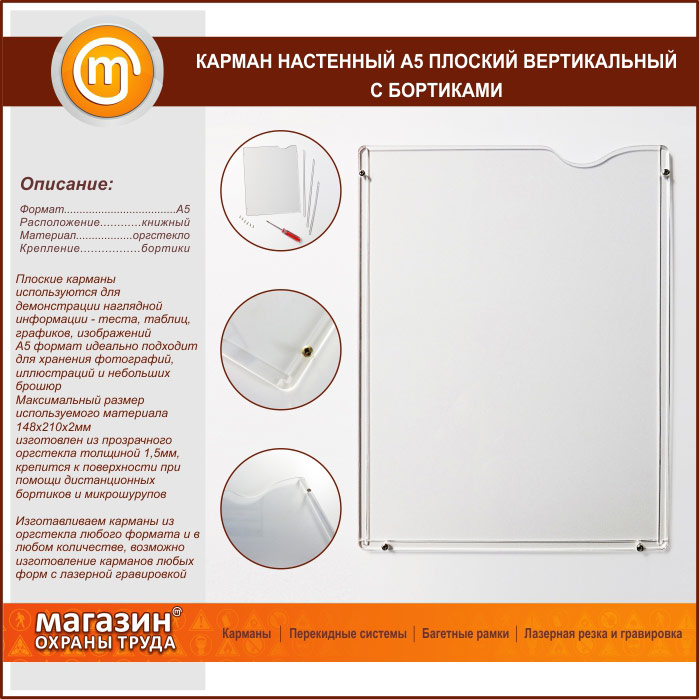 Карман настенный А5 плоский вертикальный с бортиками в Черкесске купить
