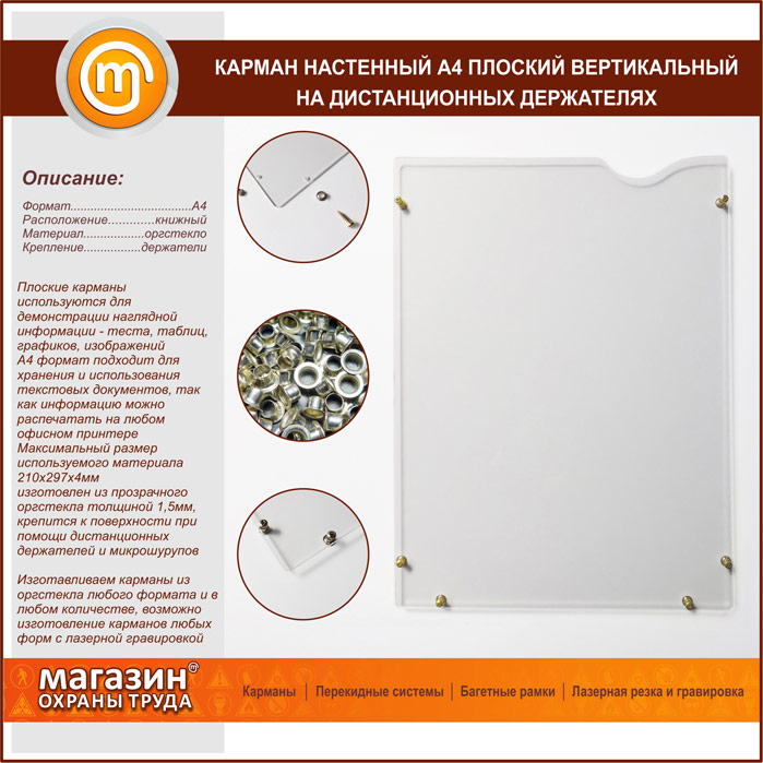 Карман настенный А4 плоский вертикальный на дистанционных держателях в Черкесске купить