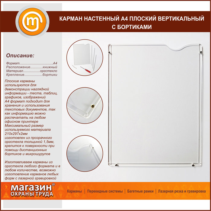 Карман настенный А4 плоский вертикальный с бортиками в Черкесске купить