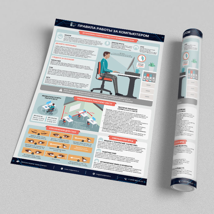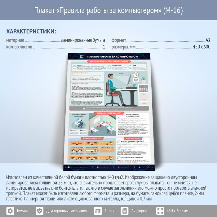 Плакат «Правила работы за компьютером» (М-16, ламинированная бумага, А2, 1 лист) в Черкесске купить