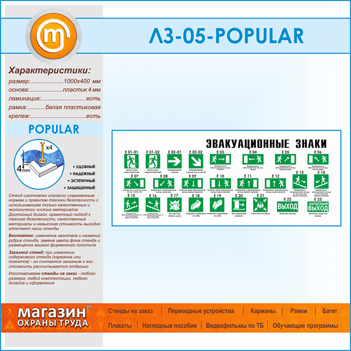 Стенд «Эвакуационные знаки» (LZ-05-POPULAR) в Черкесске купить