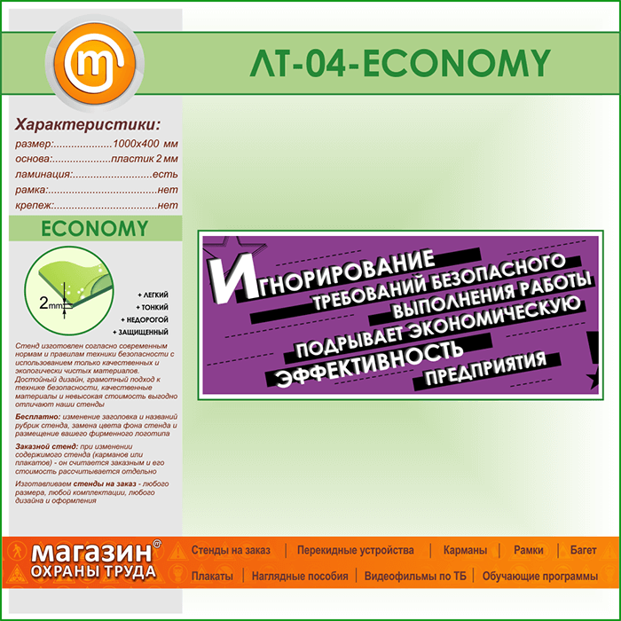 Лозунг «Игнорирование безопасного выполнения работы...» (LT-04-ECONOMY) в Черкесске купить