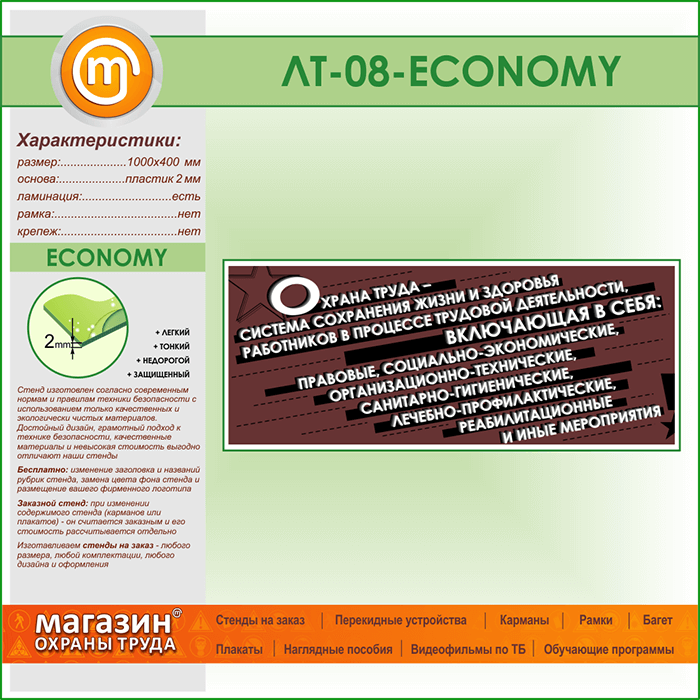 Лозунг «Охрана труда - система сохранения жизни и здоровья...» (LT-08-ECONOMY) в Черкесске купить