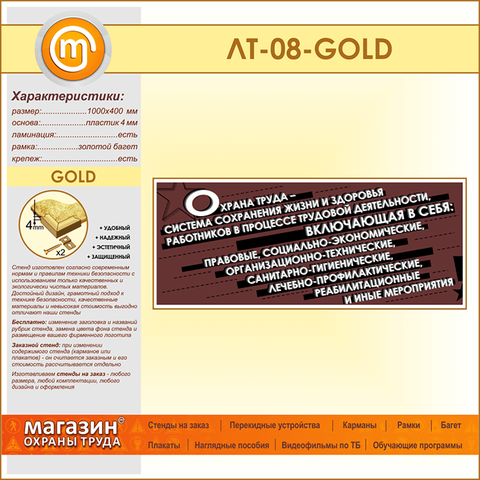 Лозунг «Охрана труда - система сохранения жизни и здоровья...» (LT-08-GOLD) в Черкесске купить