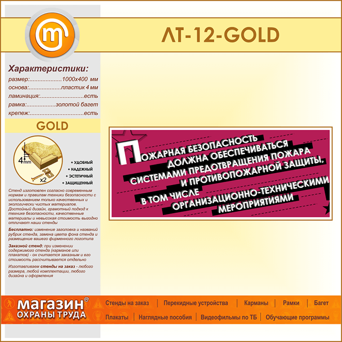 Лозунг «Пожарная безопасность должна обеспечиваться...» (LT-12-GOLD) в Черкесске купить