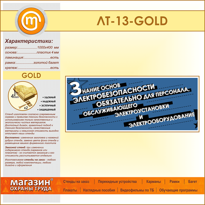 Лозунг «Знание основ электробезопасности обязательно...» (LT-13-GOLD) в Черкесске купить