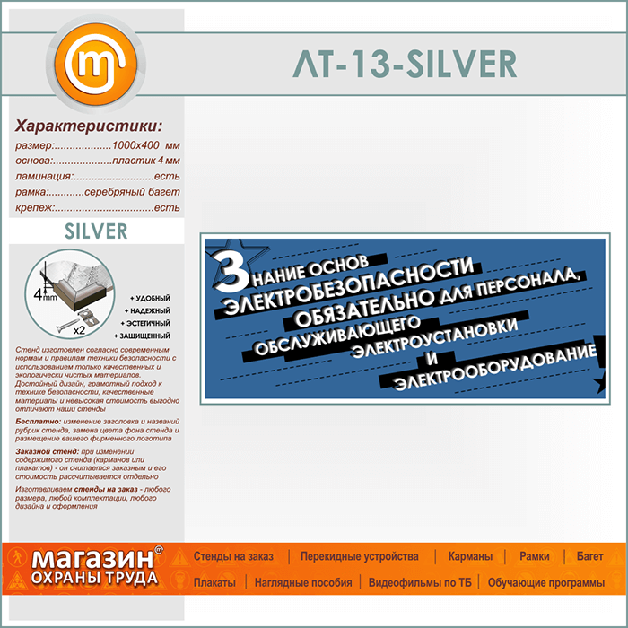 Лозунг «Знание основ электробезопасности обязательно...» (LT-13-SILVER) в Черкесске купить