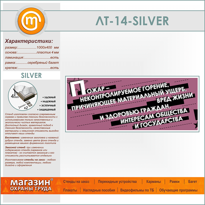 Лозунг «Пожар - неконтроллируемое горение...» (LT-14-SILVER) в Черкесске купить