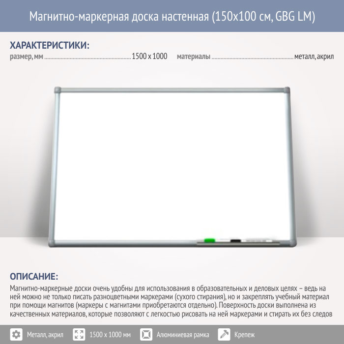 Магнитно-маркерная доска настенная (150x100 см, GBG LM) в Черкесске купить