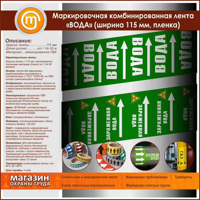 Маркировочная комбинированная лента «ВОДА» (ширина 115 мм, самоклеящаяся плёнка с ламинированием) в Черкесске купить