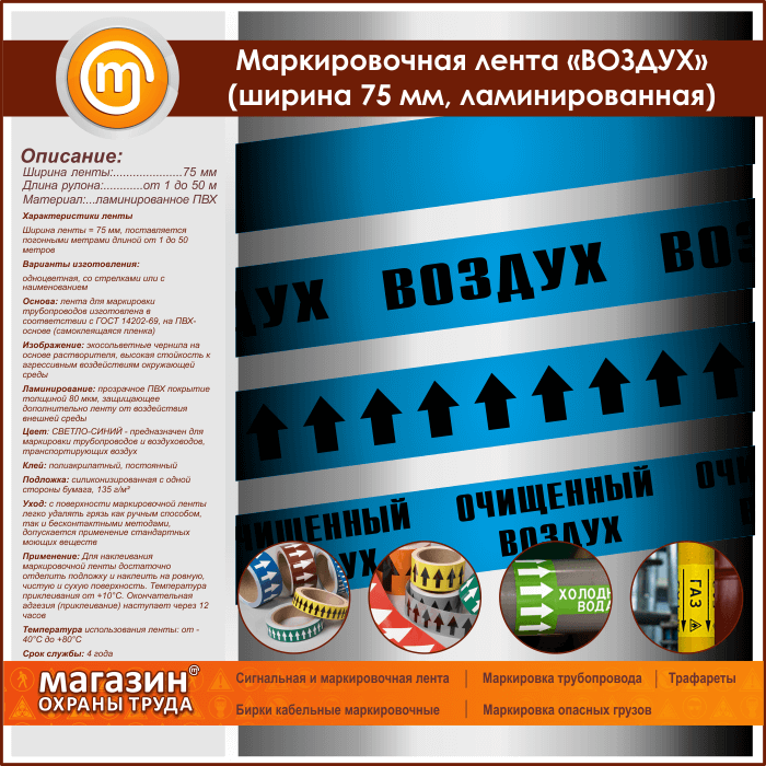Маркировочная лента «ВОЗДУХ» (ширина 75 мм, самоклеящаяся плёнка) в Черкесске купить