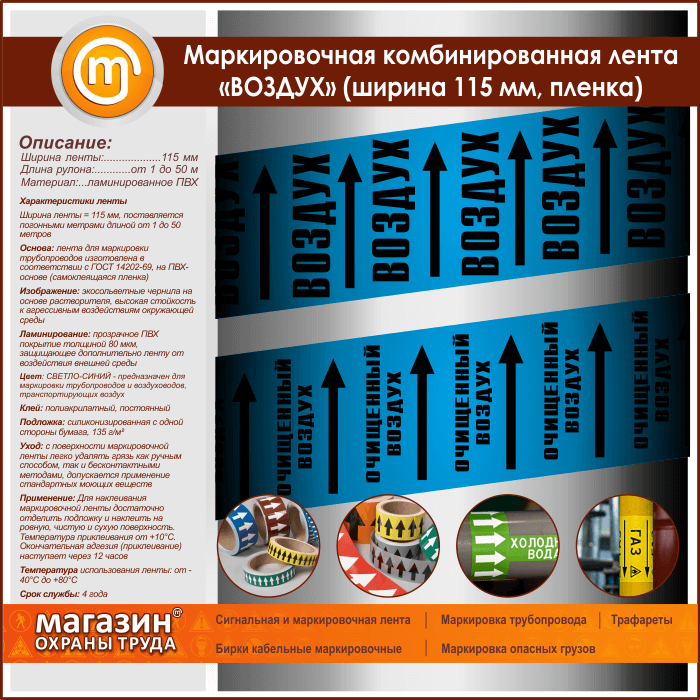Маркировочная комбинированная лента «ВОЗДУХ» (ширина 115 мм, самоклеящаяся плёнка) в Черкесске купить