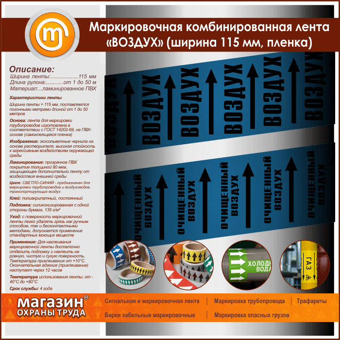 Маркировочная комбинированная лента «ВОЗДУХ» (ширина 115 мм, самоклеящаяся плёнка с ламинированием) в Черкесске купить