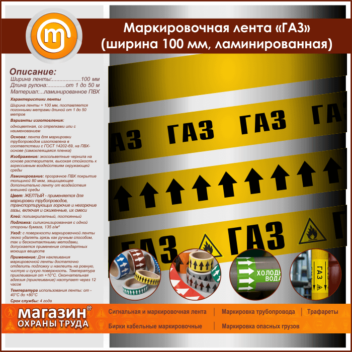 Маркировочная лента «ГАЗ» (ширина 100 мм, самоклеящаяся плёнка с ламинированием) в Черкесске купить