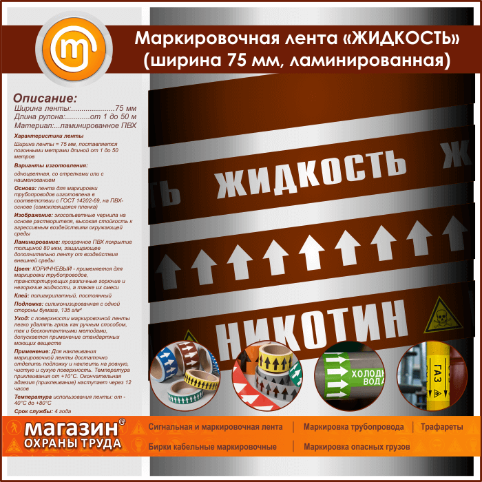 Маркировочная лента «ЖИДКОСТЬ» (ширина 75 мм, самоклеящаяся плёнка с ламинированием) в Черкесске купить