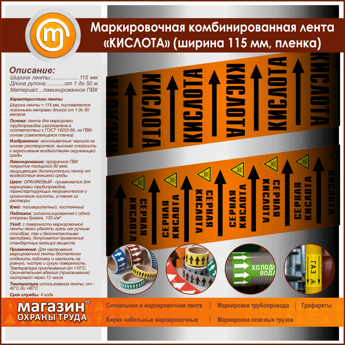 Маркировочная комбинированная лента «КИСЛОТА» (ширина 115 мм, самоклеящаяся плёнка) в Черкесске купить