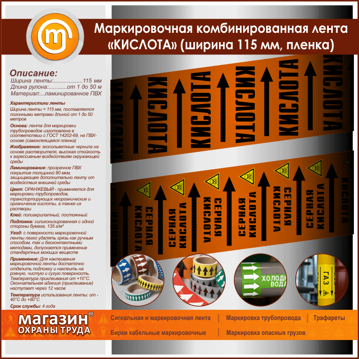 Маркировочная комбинированная лента «КИСЛОТА» (ширина 115 мм, самоклеящаяся плёнка с ламинированием) в Черкесске купить