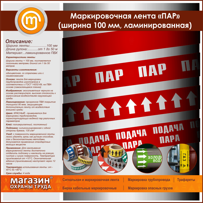 Маркировочная лента «ПАР» (ширина 100 мм, самоклеящаяся плёнка с ламинированием) в Черкесске купить