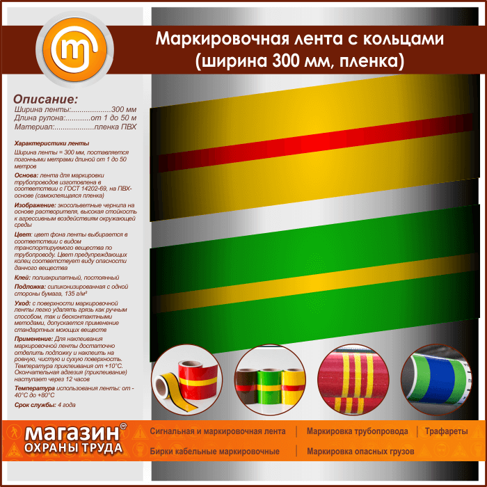 Маркировочная лента с кольцами (ширина 300 мм, самоклеящаяся плёнка) в Черкесске купить