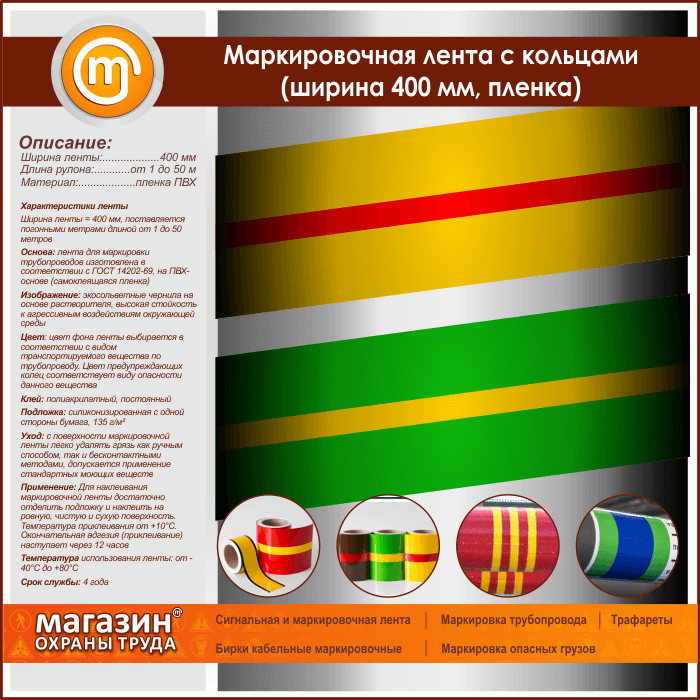 Маркировочная лента с кольцами (ширина 400 мм, самоклеящаяся плёнка) в Черкесске купить