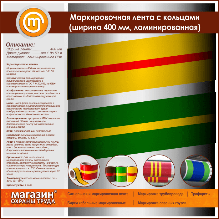 Маркировочная лента с кольцами (ширина 400 мм, самоклеящаяся плёнка с ламинированием) в Черкесске купить