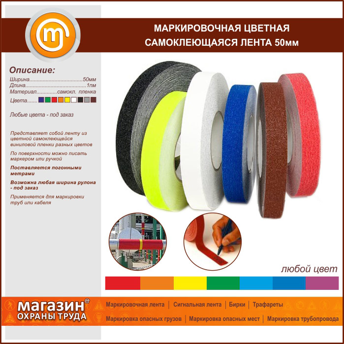 Маркировочная цветная самоклеящаяся лента, 50 мм в Черкесске купить