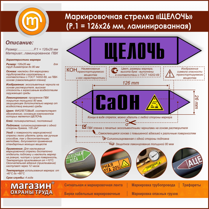 Маркировочная стрелка «ЩЕЛОЧЬ» (Р.1 = 126х26 мм, самоклеящаяся плёнка с ламинированием) в Черкесске купить