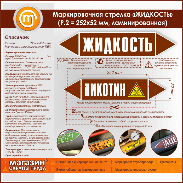 Маркировочная стрелка «ЖИДКОСТЬ» (P.2 = 252х52 мм, самоклеящаяся плёнка с ламинированием) в Черкесске купить