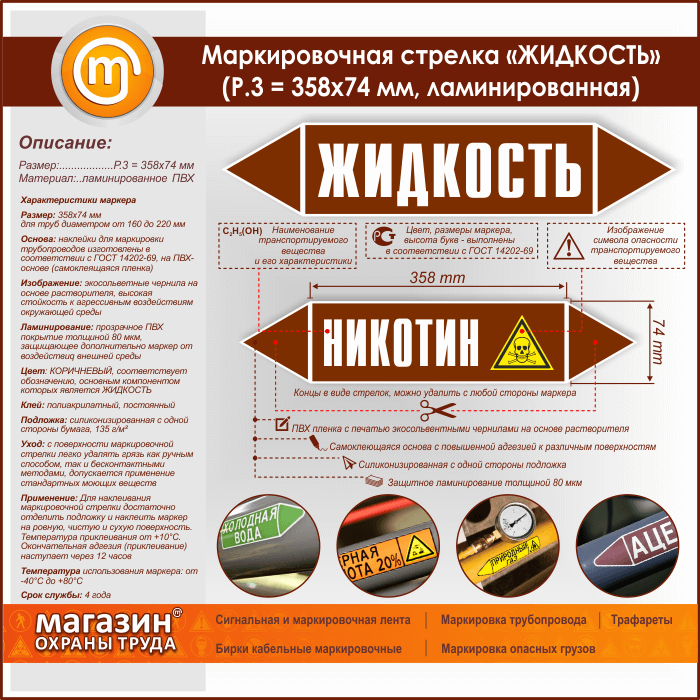 Маркировочная стрелка «ЖИДКОСТЬ» (P.3 = 358х74 мм, самоклеящаяся плёнка с ламинированием) в Черкесске купить