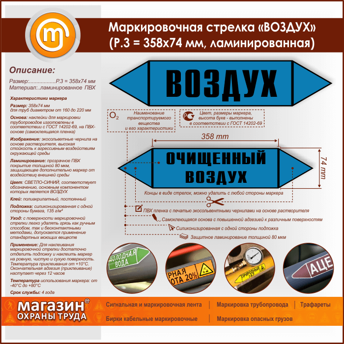 Маркировочная стрелка «ВОЗДУХ» (P.3 = 358х74 мм, самоклеящаяся плёнка с ламинированием) в Черкесске купить