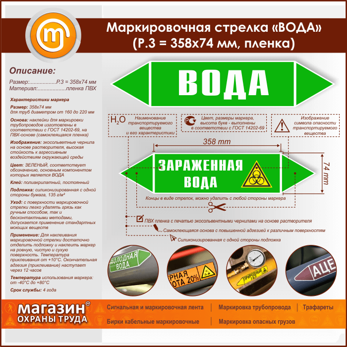 Маркировочная стрелка «ВОДА» (P.3 = 358х74 мм, самоклеящаяся плёнка) в Черкесске купить