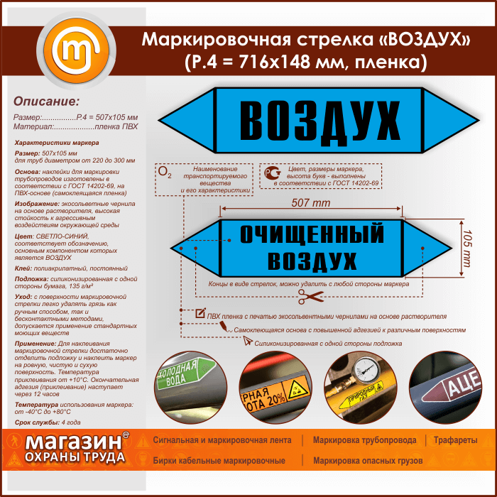 Маркировочная стрелка «ВОЗДУХ» (P.4 = 507х105 мм, самоклеящаяся плёнка) в Черкесске купить