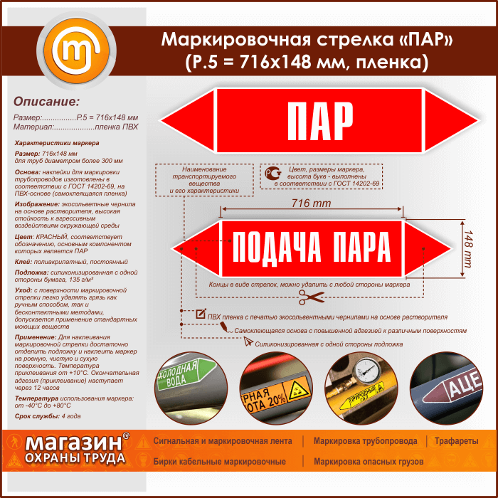 Маркировочная стрелка «ПАР» (P.5 = 716х148 мм, самоклеящаяся плёнка) в Черкесске купить