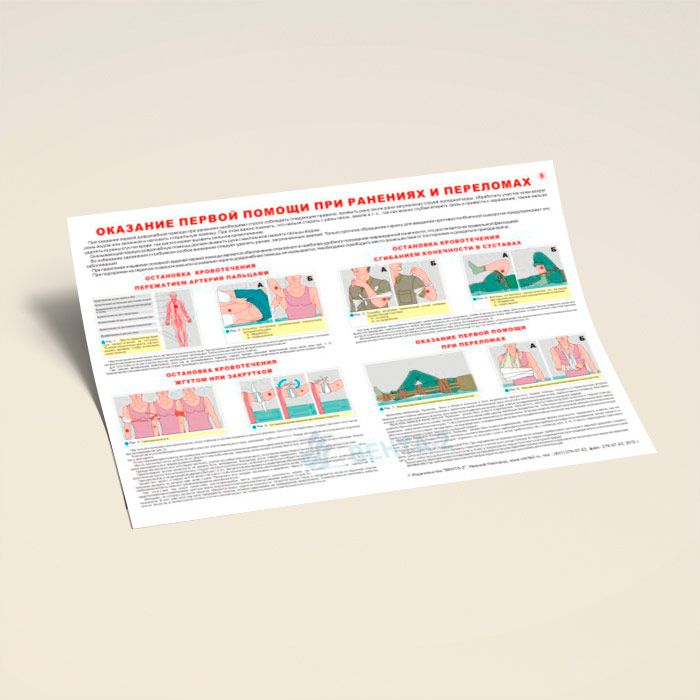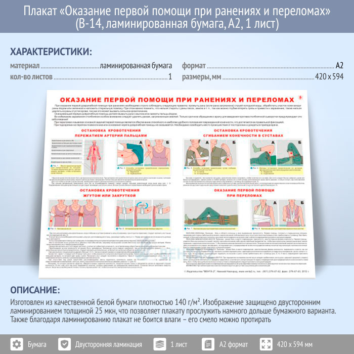 Плакат «Оказание первой помощи при ранениях и переломах» (В-14, ламинированная бумага, А2, 1 лист) в Черкесске купить
