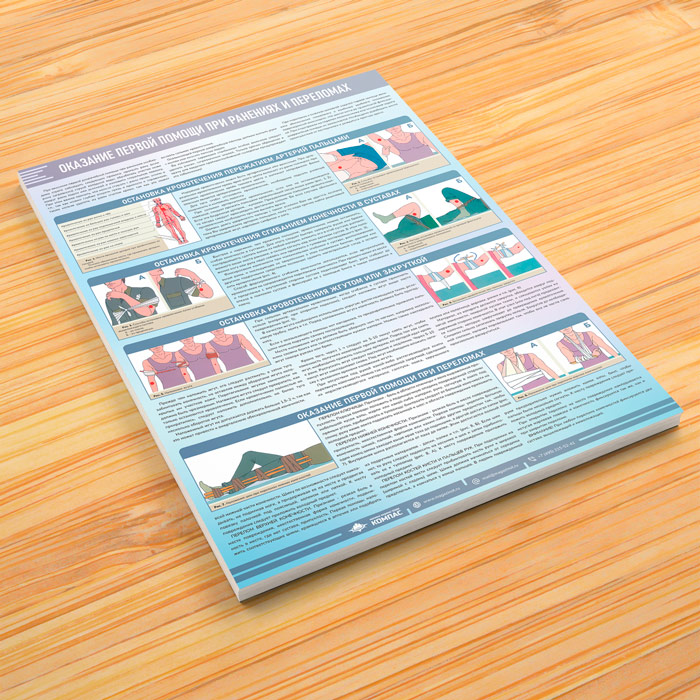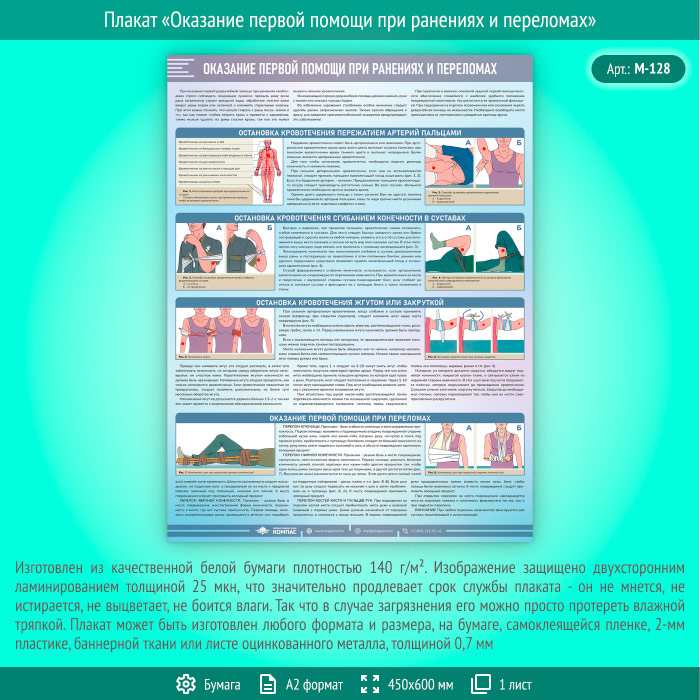 Плакат «Оказание первой помощи при ранениях и переломах» (М-128, ламинированная бумага, А2, 1 лист) в Черкесске купить