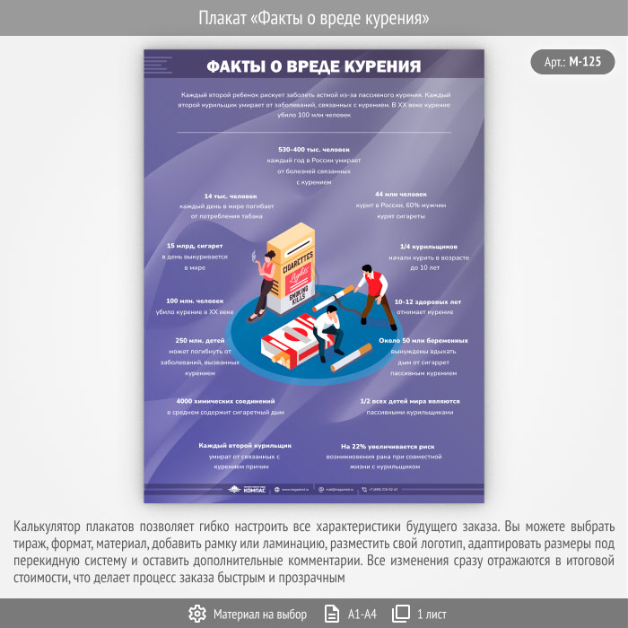 Плакат «Факты о вреде курения» (М-125, 1 лист) в Черкесске купить
