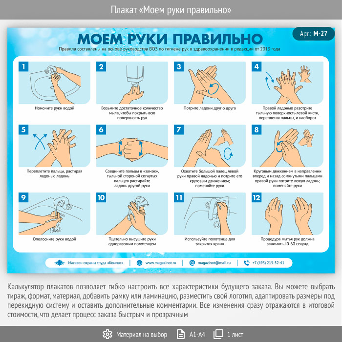 Плакат «Моем руки правильно» (М-27, 1 лист) в Черкесске купить