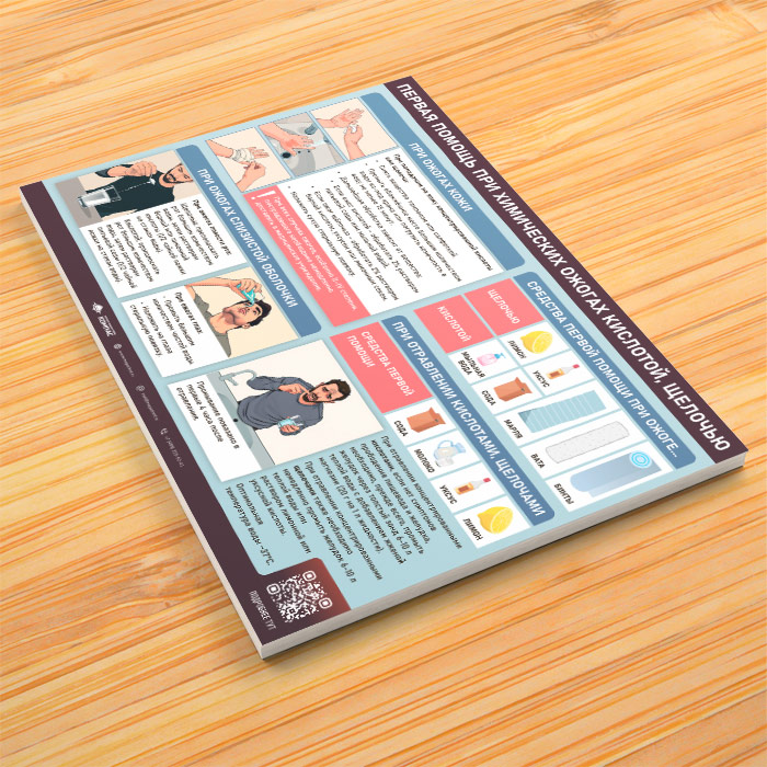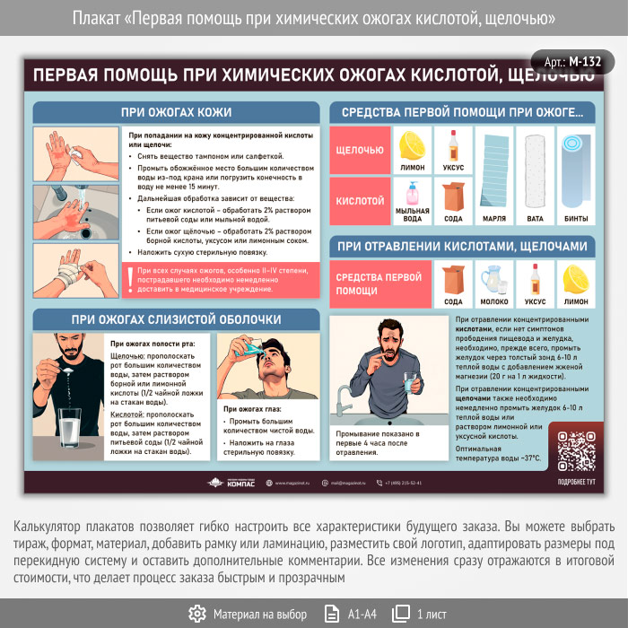 Плакат «Первая помощь при химических ожогах кислотой, щелочью» с QR (М-132, 1 лист) в Черкесске купить