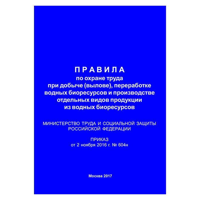 Правила по охране труда при добыче (вылове), переработке водных биоресурсов и производстве отдельных видов продукции из водных биоресурсов (Приказ Минтруда РФ от 02.11.2016 № 604н) (ЛАП-22) в Черкесске купить