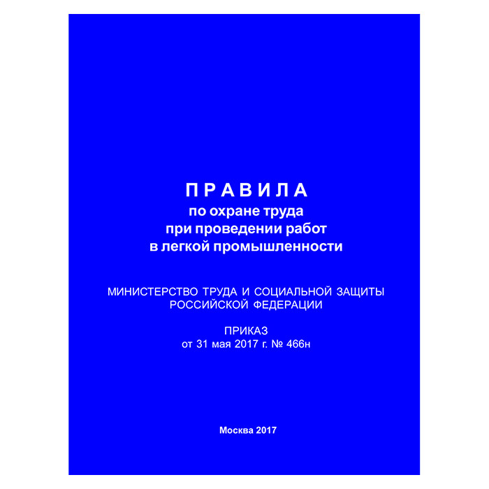 Правила по охране труда при проведении работ в легкой промышленности (Приказ Минтруда РФ от 31.05.2017 № 466н) (ЛАП-26) в Черкесске купить