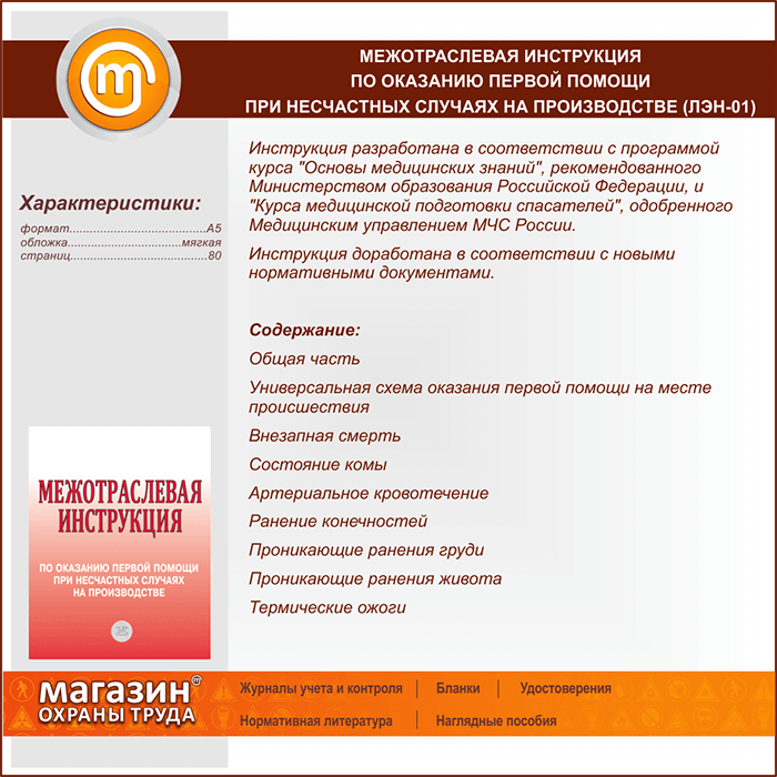 Межотраслевая инструкция по оказанию первой помощи при несчастных случаях на производстве (ЛЭН-01) в Черкесске купить