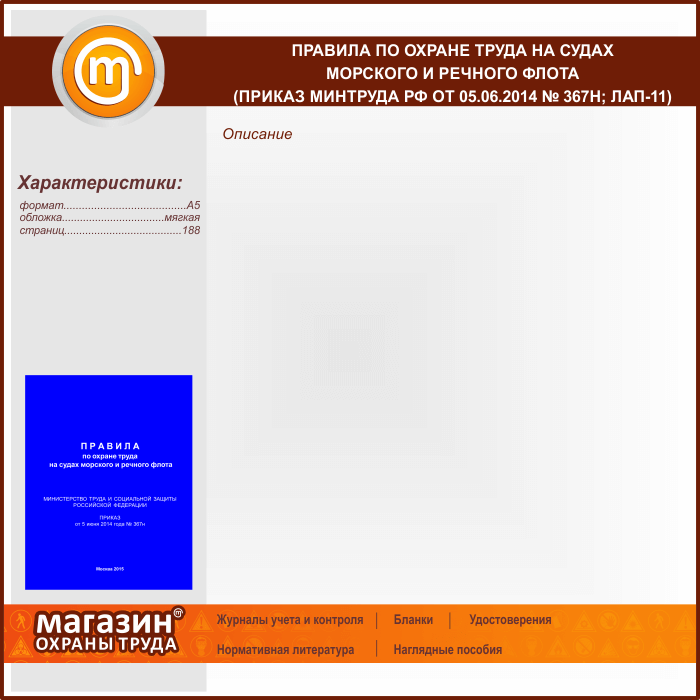Правила по охране труда на судах морского и речного флота (Приказ Минтруда РФ от 05.06.2014 № 367н) (ЛАП-11) в Черкесске купить