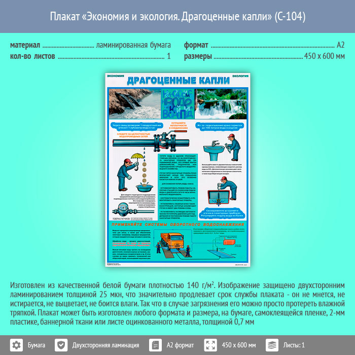 Плакат «Экономия и экология. Драгоценные капли» (С-104, ламинированная бумага, А2, 1 лист) в Черкесске купить
