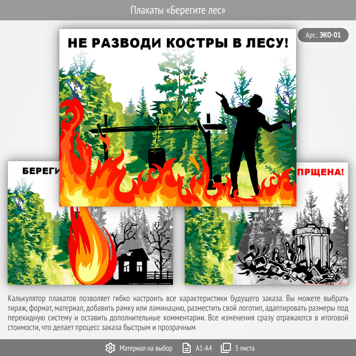 Плакаты «Берегите лес» (ЭКО-01, 3 листа) в Черкесске купить