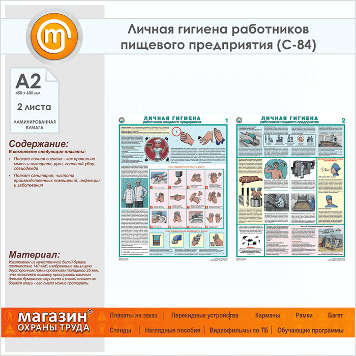 Плакаты «Личная гигиена работников пищевого предприятия» (С-84, ламинированная бумага, А2, 2 листа) в Черкесске купить