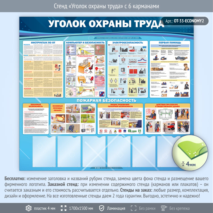Стенд «Уголок охраны труда» с 6 карманами (OT-33-ECONOMY2) в Черкесске купить