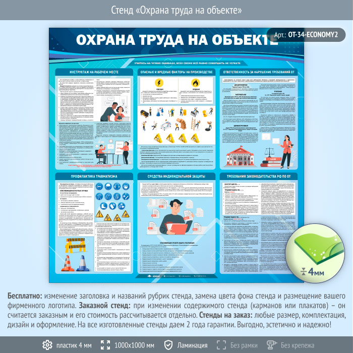 Стенд «Охрана труда на объекте» (OT-34-ECONOMY2) в Черкесске купить