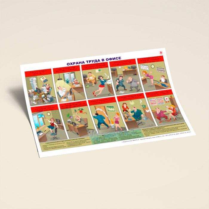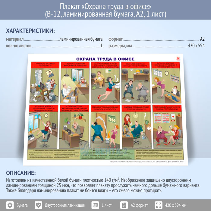 Плакат «Охрана труда в офисе» (В-12, ламинированная бумага, А2, 1 лист) в Черкесске купить