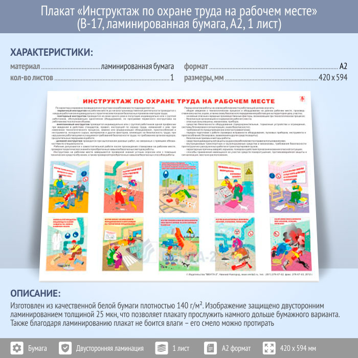 Плакат «Инструктаж по охране труда на рабочем месте» (В-17, ламинированная бумага, А2, 1 лист) в Черкесске купить
